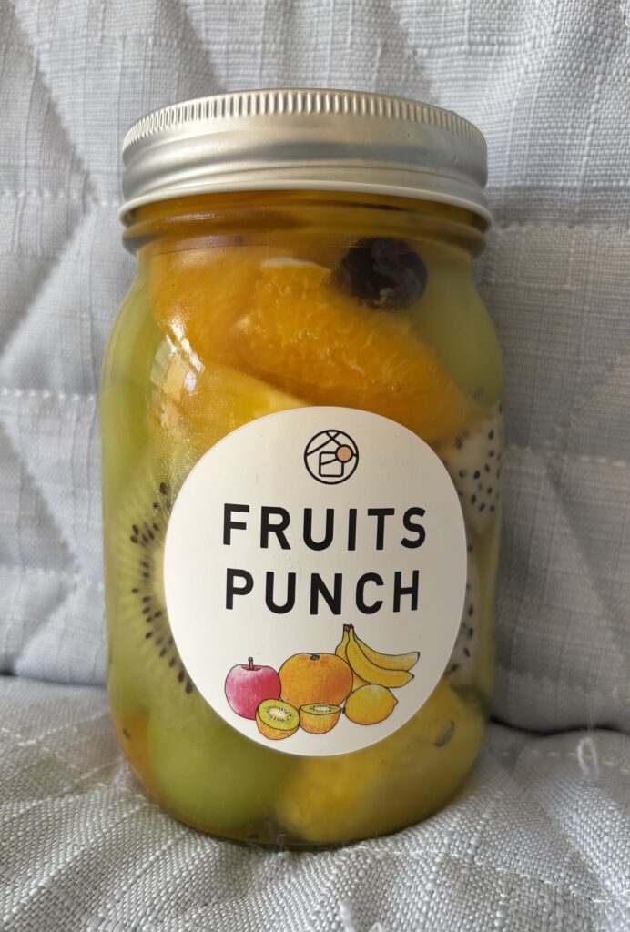 会社に行く途中の白山神社で出会う方と親しくなったOさんが「とても楽しみにしていたのに、行かれなくなってしまいとても残念」と言ってフルーツポンチを送って下さいました。