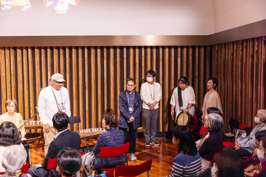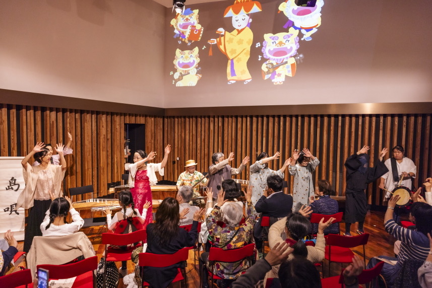 T君の島唄の三絃とKさんの和太鼓に合わせて出演者がカチャーシーで入場。